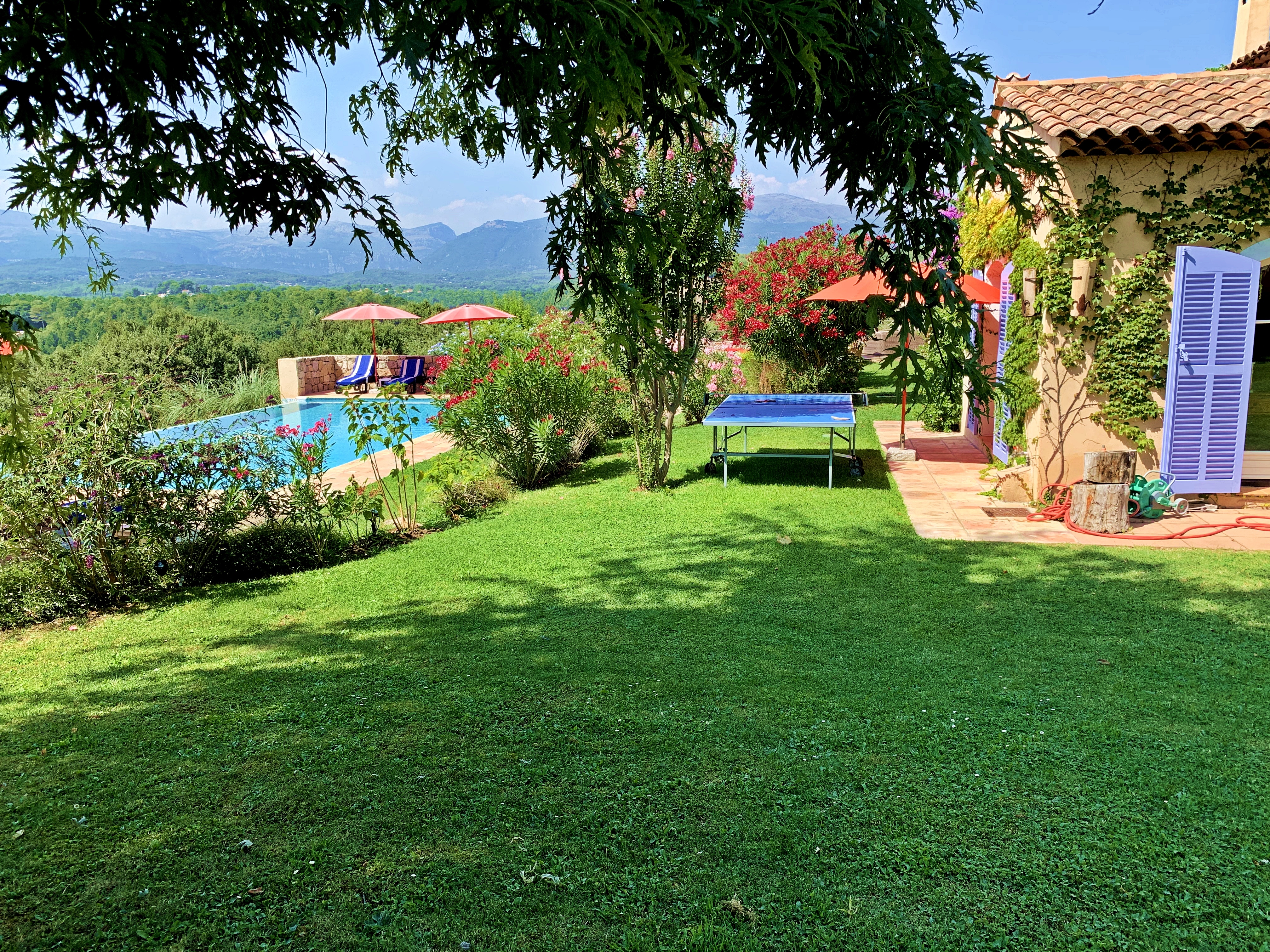 Welcome to your Mediterranean escape, a beautiful villa with air conditioning tucked away at the end of a secure private domain in Valbonne. Surrounded by lush gardens and overlooking the rolling hills and woodlands of the Côte d’Azur, it offers both peace and privacy while keeping you close to the glamour of the Riviera.