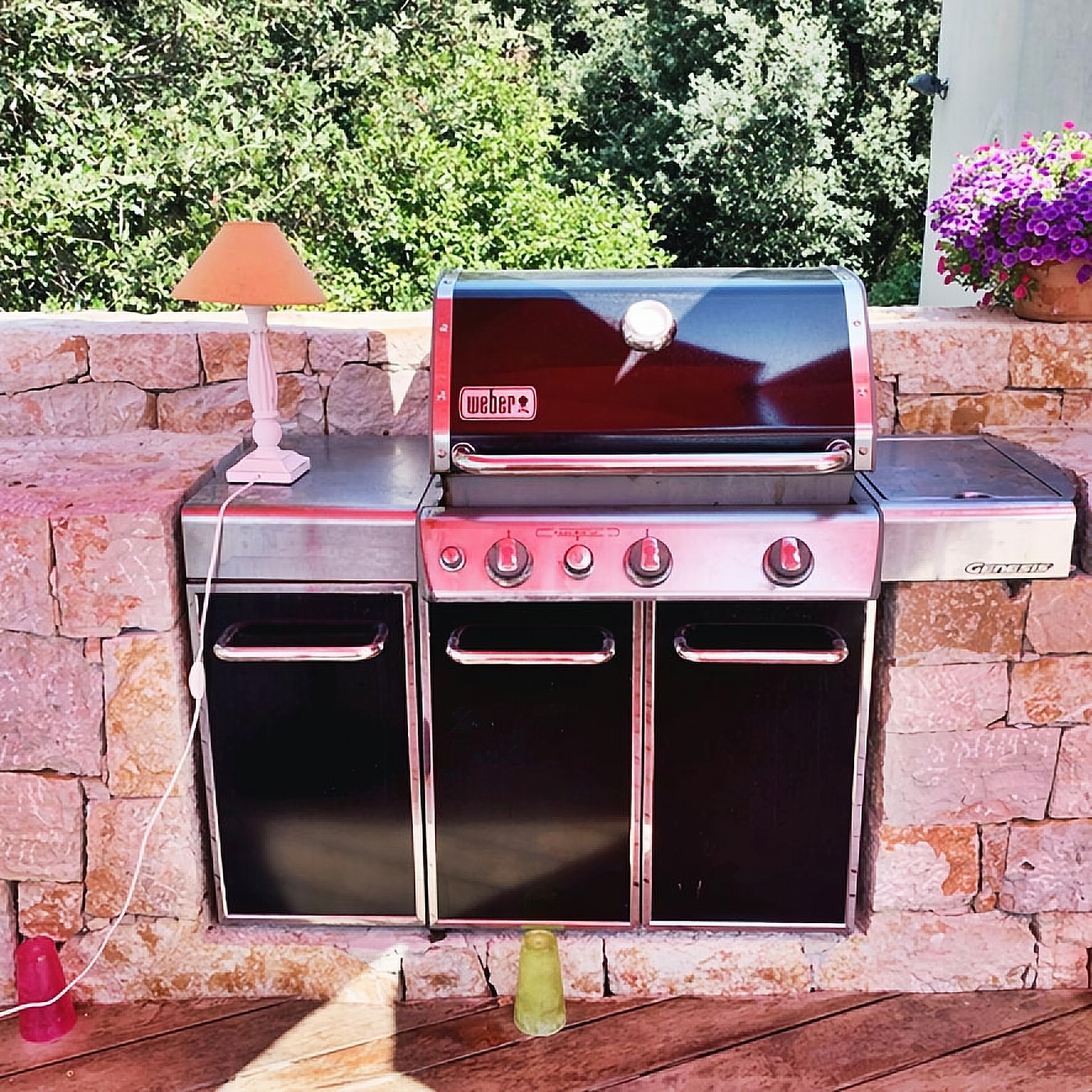 Air conditioning, a washing machine, tumble dryer, and additional fridge-freezer add to your convenience, while the garden is furnished with loungers, a parasol, and a lounge set for outdoor relaxation. Guests also have access to a shared tennis court and table tennis.