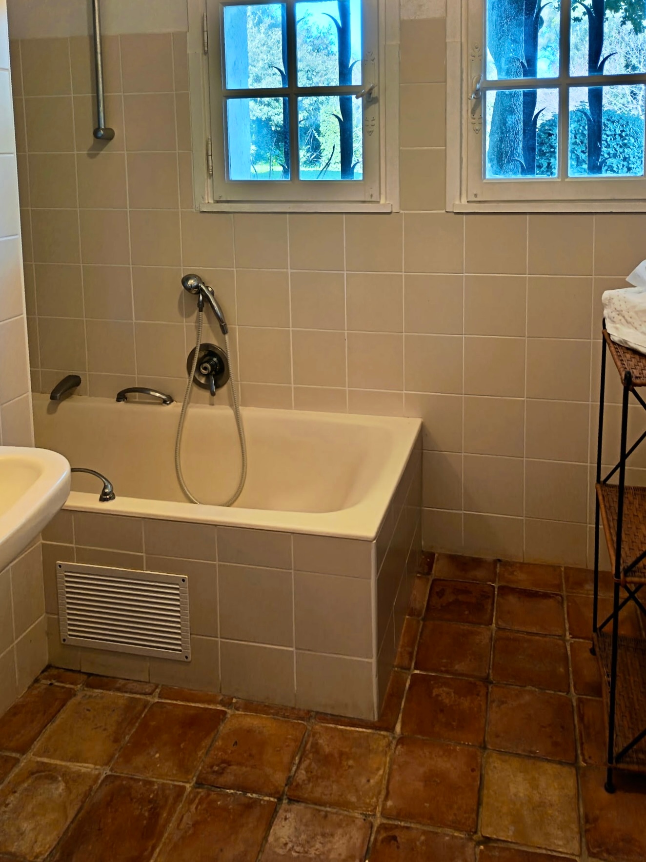 Step outside to enjoy the peaceful ambiance of the large private garden. Dine outdoors on the shaded terrace, relax on the lawn under the tall fir trees, or savor a barbecue with spectacular views. The private swimming pool (11 x 5 m, open from mid-April to mid-October), with Roman steps and an outdoor shower, is surrounded by lush Mediterranean greenery. Comfortable loungers invite you to bask in the sun in complete tranquility.